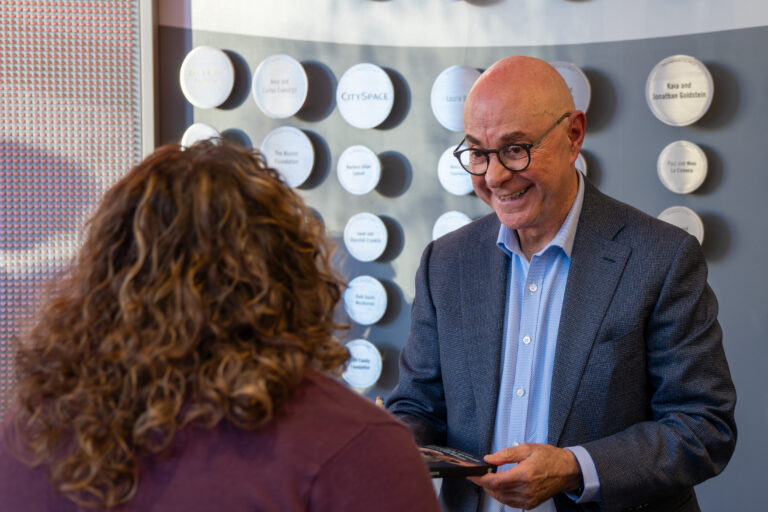 DOWNLOAD: Joseph Aoun, PhD, President of Northeastern University, signs a copy of his book, “Robot Proof” for an Industry Collaborative attendee.